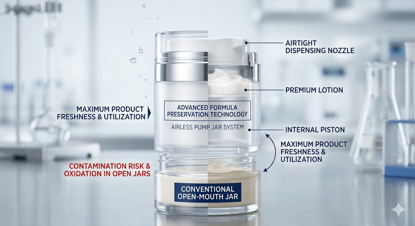เหตุผลหลักสำหรับการเปลี่ยนแปลงของอุตสาหกรรมก็คือ ขวดปั๊มสุญญากาศ ช่วยยืดอายุการเก็บรักษาของผลิตภัณฑ์ดูแลผิวที่ปราศจากสารกันบูดและเป็นธรรมชาติได้อย่างมาก โดยกำจัดการสัมผัสอากาศ เนื่องจากผู้บริโภคต้องการ "ความงามที่สะอาด" โดยใช้สารเพิ่มความคงตัวสังเคราะห์น้อยลง บรรจุภัณฑ์จึงต้องเข้ามามีบทบาทในการปกป้อง ขวดโหลแบบดั้งเดิมช่วยให้ออกซิเจนเข้าได้ทุกครั้งที่เปิดฝา ส่งผลให้ส่วนผสมออกฤทธิ์ เช่น วิตามินซี เรตินอล และน้ำมันจากพืชพรรณต่างๆ สลายตัวอย่างรวดเร็ว